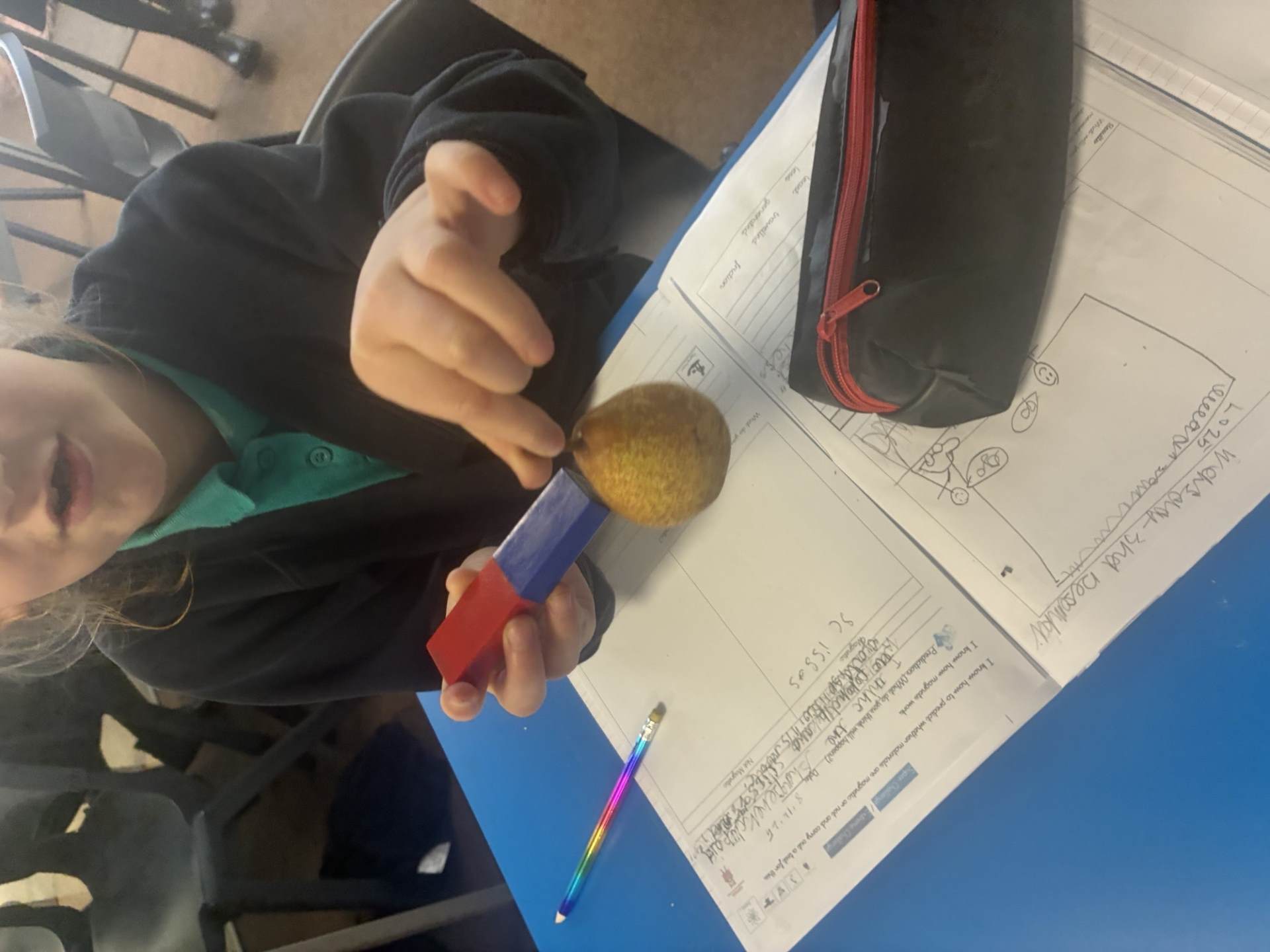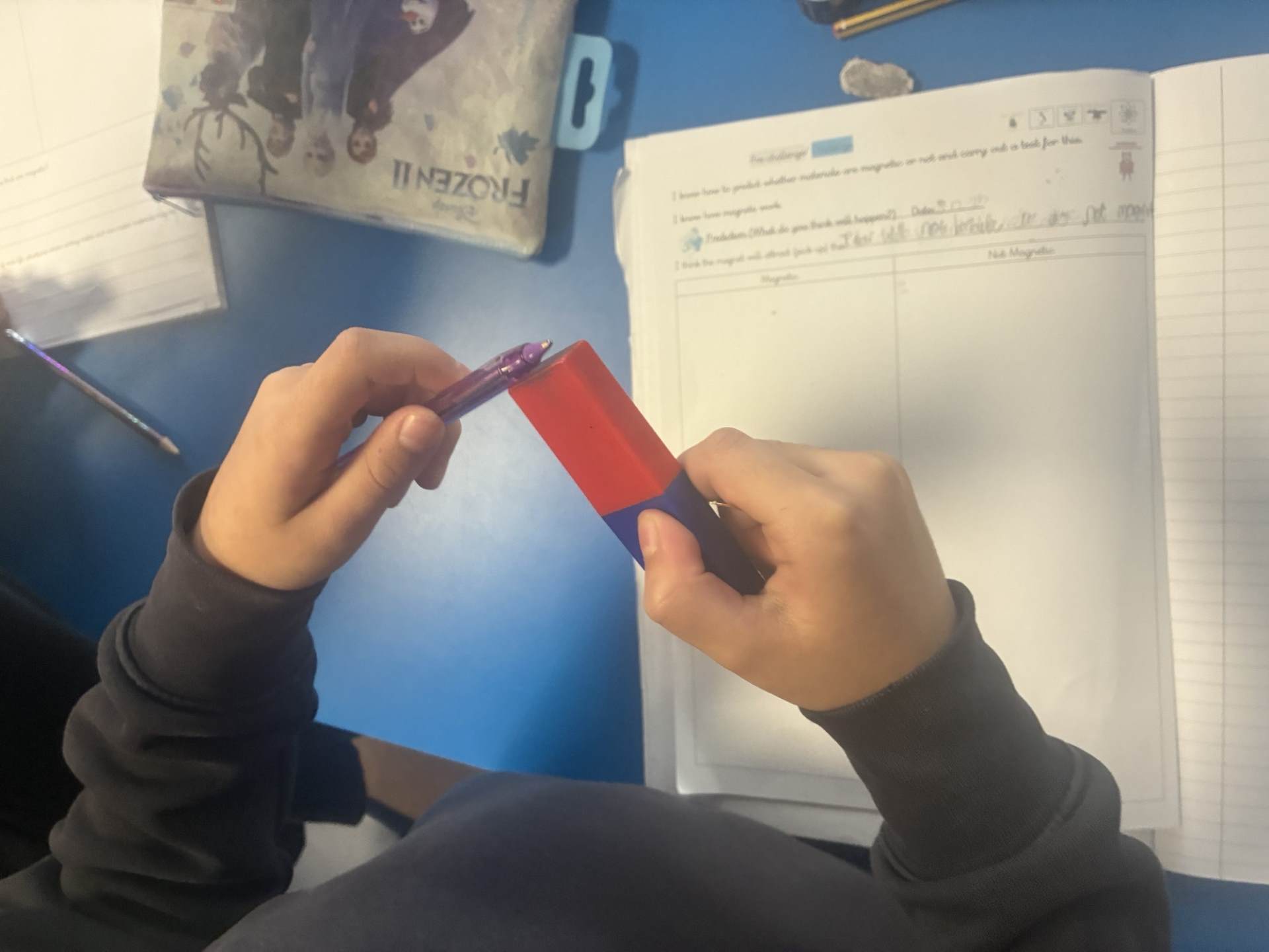 Our science this term was Forces and Magnets. During our science lessons we carried out a variety of experiments where we had to ensure the test was fair such as 'predicting whether an object is magnetic or not' and 'observing how objects move on different surfaces'.